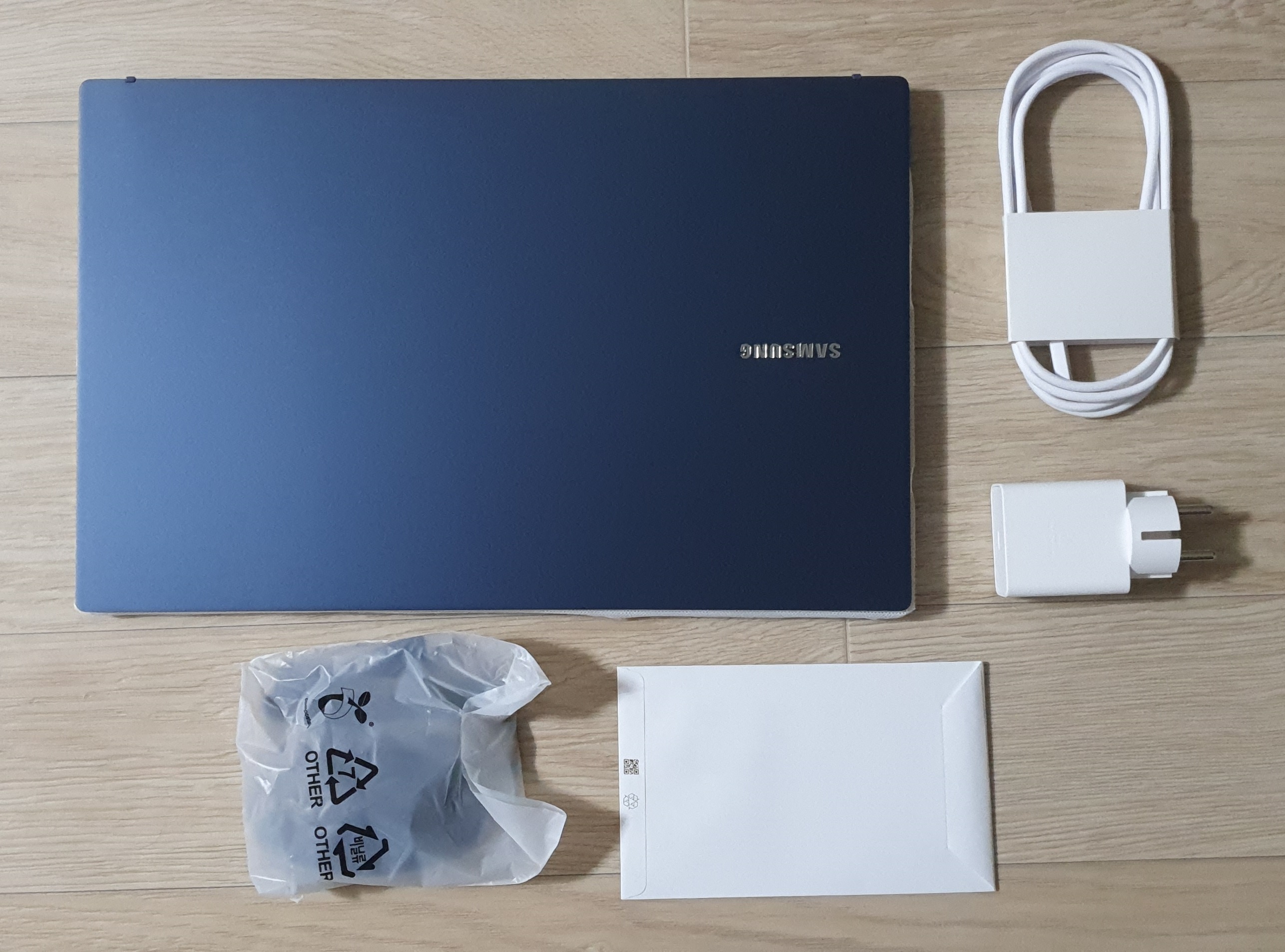 구성품은 노트북, 마우스, 설명서(?), 충전 케이블, 충전 어댑터로 구성이 되어있다.